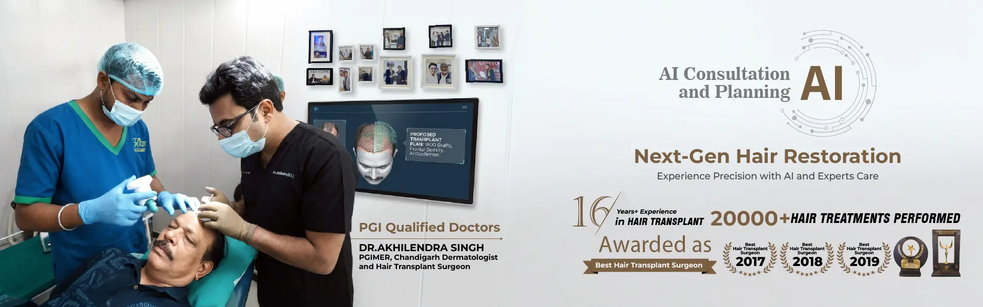 Dr. Akhilendra Singh, founder of AKS Clinic Gurgaon, is a renowned dermatologist and board-certified hair transplant surgeon with over 15 years of experience. An MD from PGI Chandigarh, he has performed 2000+ hair transplants and 300+ corrective surgeries. Specializing in high-density transplants, he minimizes graft loss and maximizes results. A speaker at global events like ISHRS and Asia FUE Workshop, Dr. Singh is respected internationally. He emphasizes personalized consultations, addressing each patient’s aesthetic goals and emotional needs. His clientele includes celebrities, cricketers, and public figures, making him one of India’s most trusted names in hair restoration.